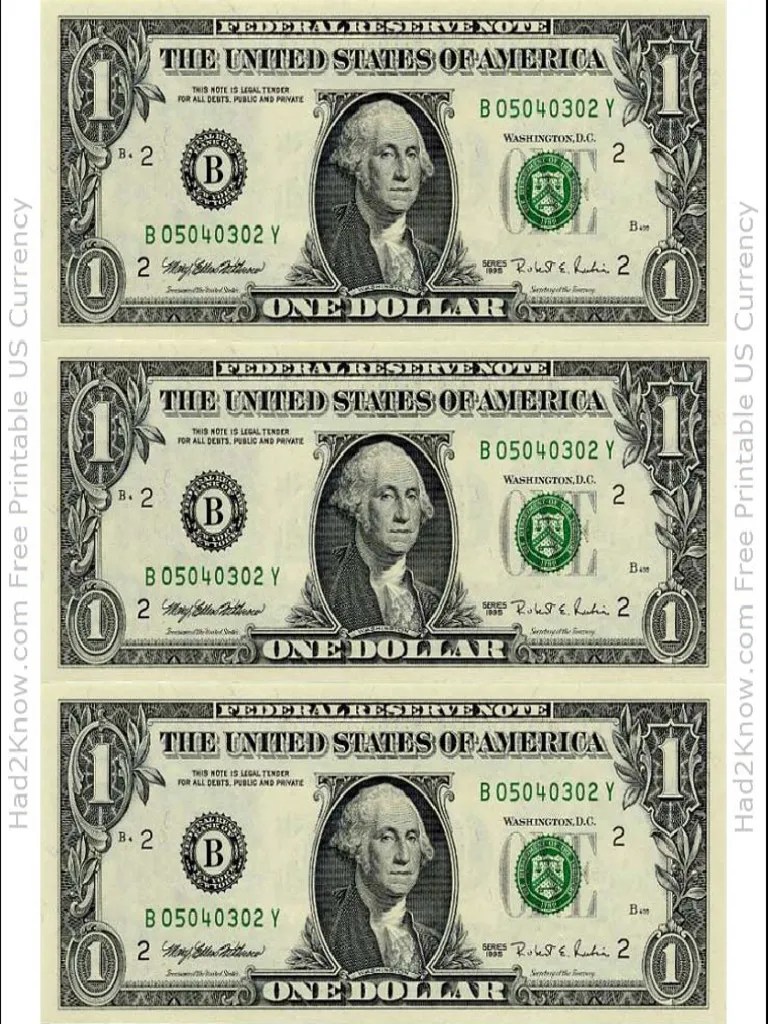 1 Dollar Bill Template Letter Page With 4 Real Size Dollar Etsy